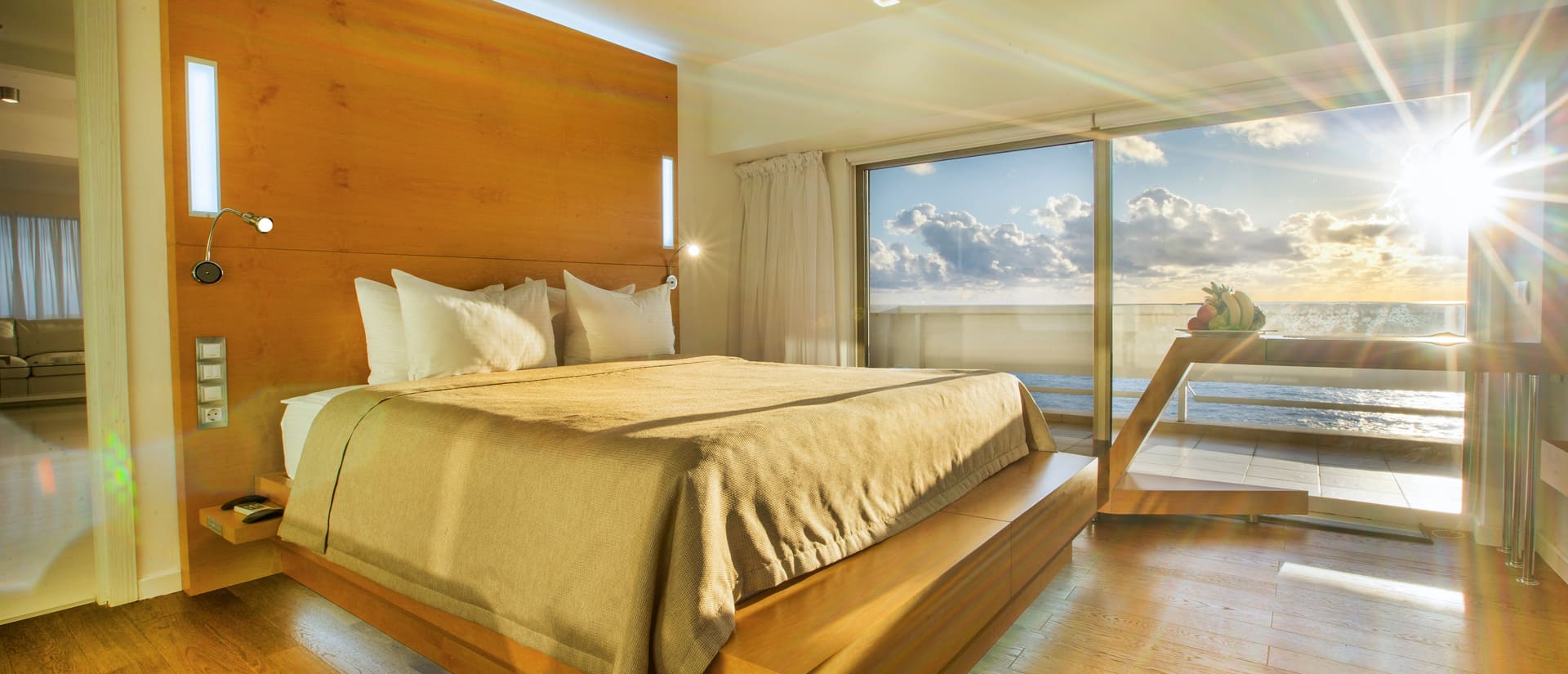 Номерной фонд отеля позволяет одновременно разместить до 2000 гостей. Среди категорий размещения: небольшие уютные стандартные номера, однокомнатные и двухкомнатные люксы, трехкомнатные апартаменты. Оснащение включает комплект мебели, телевизор, кондиционер, мини-холодильник, сейф, телефон. Из огромных панорамных окон открываются прекрасные виды на морское побережье, утопающий в зелени курорт и Кавказские горы. На территории отеля можно бесплатно пользоваться беспроводным интернетом.